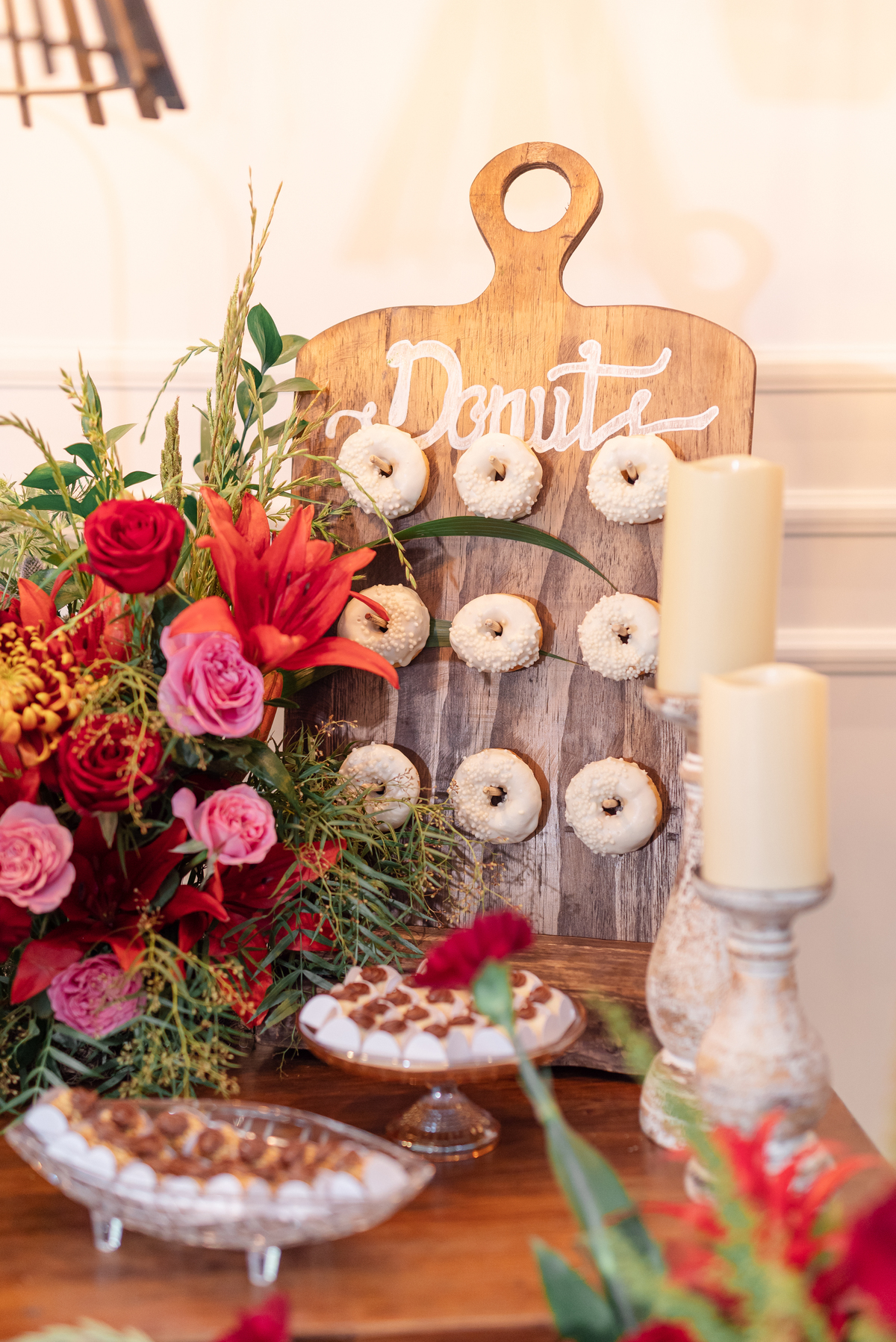 A decoração também estava linda, e cheia de isnpirações! Ainda tivemos donuts, bar de drinks, tatuagem, cabine de fotos, enfim, uma casório digno da espera que teve hehe