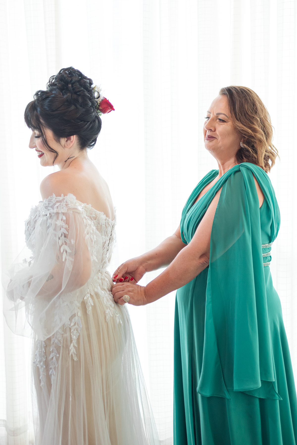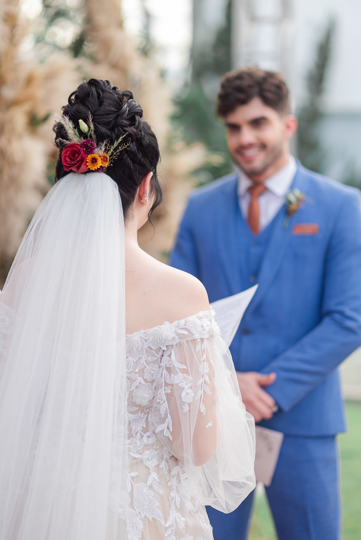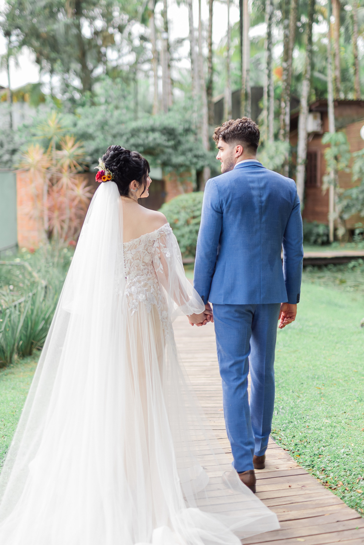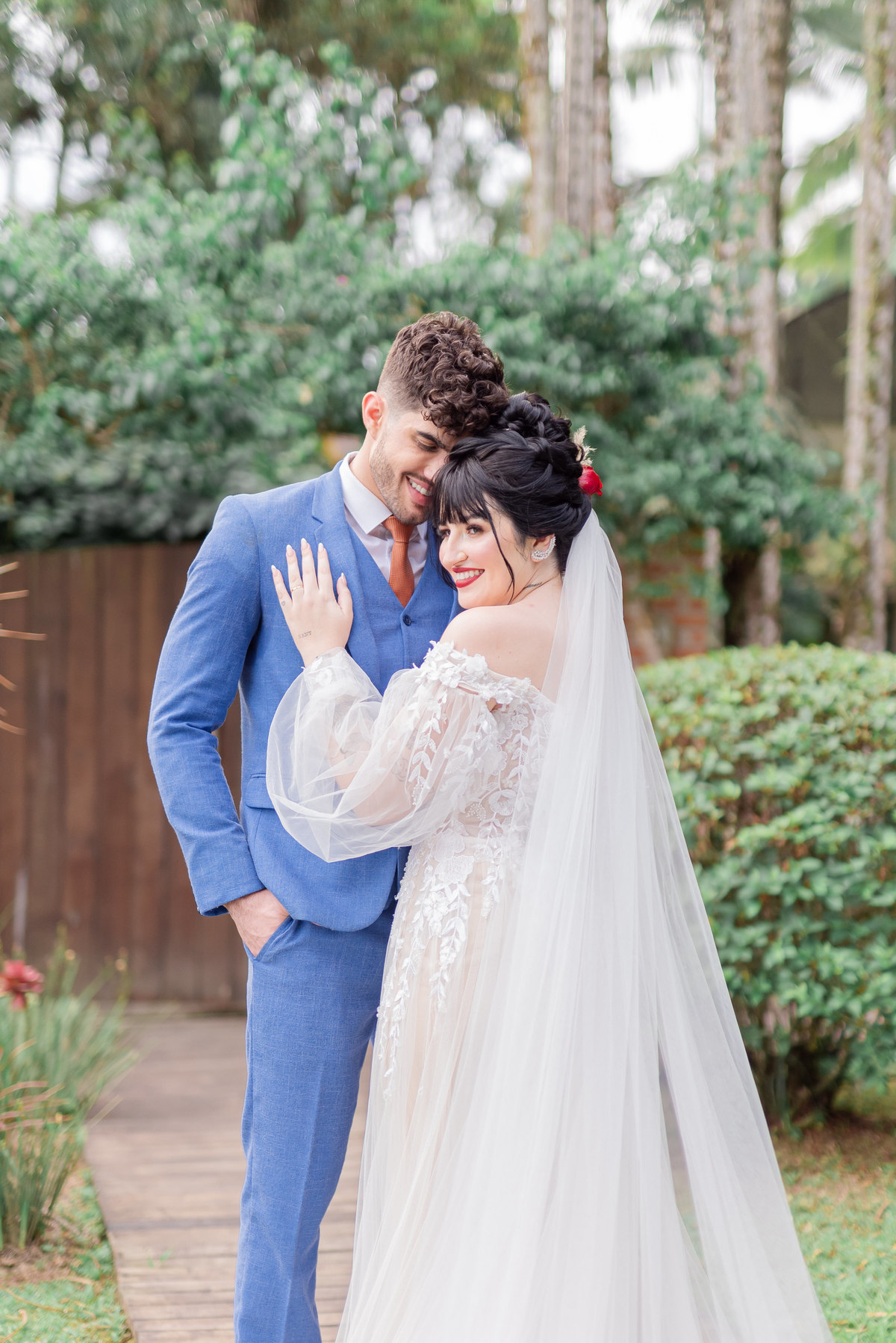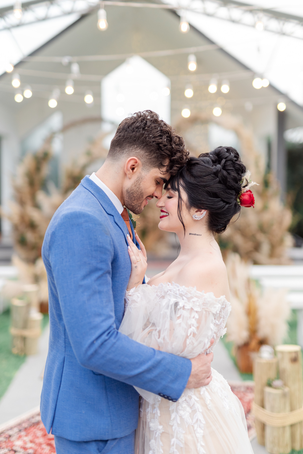 A produção dos noivos foi um caso à parte, porque gente, ô casal lindo, né? Foi muito bacana ver eles trazendo toques das suas personalidades para as produções, deixou tudo mais especial e único.